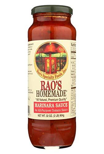 Raos, Sauce Marinara Homemade evokes nostalgic memories of family dinners. A blend of sweet, imported Italian tomatoes, Italian olive oil, sweet onions, fresh basil, fresh garlic, crushed black pepper, salt and fresh oregano.