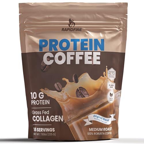 - MADE WITH THE FINEST COLLAGEN-WHEY PROTEIN BLEND. Rapid Fire Protein Coffee boasts the most advanced protein blend featuring whey protein, collagen and milk protein. These proteins digest at a different rate for prolonged muscle feeding.