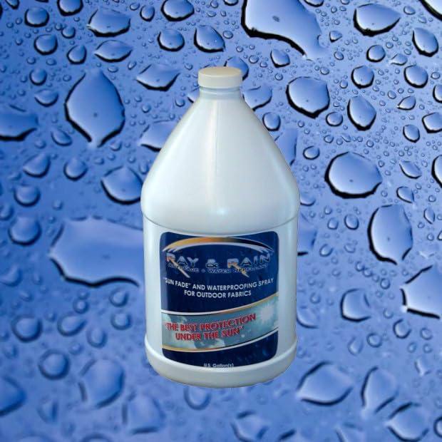 OUTDOOR FABRIC PROTECTION SPRAY - Ray & Rain Repellant is made for waterproofing fabric and as a weatherproof spray that will prevent water damage, create stain resistance and is formulated to "stop sun fading" on outdoor fabric. Laboratory tested results show a significant improvement in color retention on fabrics treated with Ray & Rain Repellant . EASY TO APPLY SPRAY/LONG LASTING - Simply spray on. Dries to the touch in about 4 hours. Fully bonds to an invisible, lasting finish with maximum protection in about 72 hours. Items treated with Ray & Rain Repellant will dry faster when the weather clears allowing for quicker storage. A single application will last for an entire season. VERSITILE - Perfect on awnings, outdoor bags and backpacks, boat covers, flags, tents ad umbrellas. Customers are pleased with the product's ability to prevent fading on outdoor fabrics. SAFE AND DURABLE - It is a unique solvent based micro-polymer solution that imparts a durable and invisible anti-soil protective finish. It is safe on all types of fabrics. Ray & Rain Repellant can be stored at the end of the season and will still be 100% effective when use at the beginning of the next season. COVERAGE - One gallon will cover approximately 1500Sq. Ft. [L x W] depending on fabric type and density. USE ON FABRIC ONLY. NO VINYL AND NO LEATHER EXCEPT SUEDE. No other product can provide such a superior protective coating against spots, spills, stains and fading from the sun. Protect your investment and extend the life of your fabric. OTHER USES - Ray & Rain Repellant can be also be applied to any indoor fabric that is exposed to sun, soil and weather. Made in USA