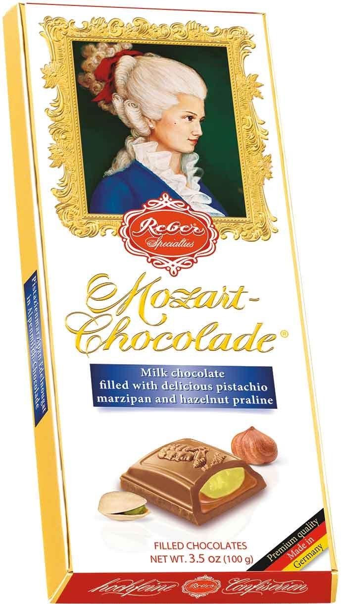 - Constanze Mozart Milk Chocolate Bar filled with pistachio marzipan and finest praline in a layer of smooth melting milk chocolate. This product is KOSHER-dairy certified