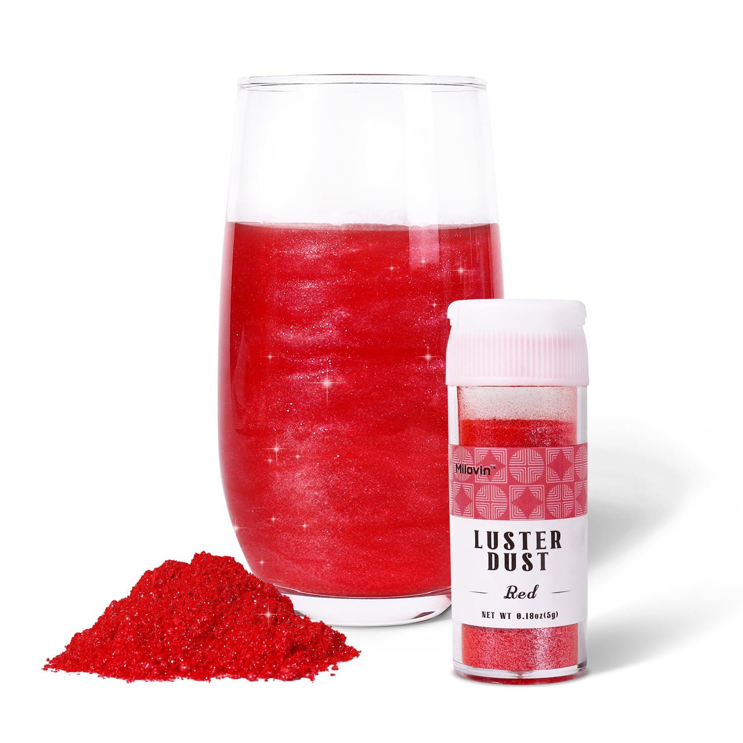 - Wide Application: Red luster dust edible for cakes, cupcakes, baking, chocolates, macarons, cookies, pop cakes, strawberries, etc. But also can have a shimmering effect in wine, vodka, cocktails, drinks, and champagnes
