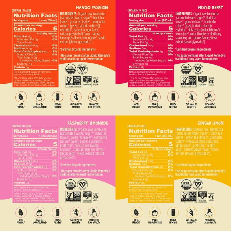 - The Tastiest Kombucha Going 'Round: Liquid Remedy is the only light and refreshing, low calorie, gut health drink with no sugar thats so freakin tasty, you can drink it on the daily