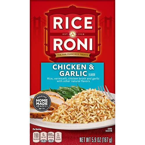 Simply satisfying! Our Rice-A-Roni Chicken & Garlic flavor blends rice and vermicelli with chicken broth, garlic and other natural flavors to create a tasty side dish. It's the perfect complement to your favorite chicken recipes, and is sure to delight your whole family.