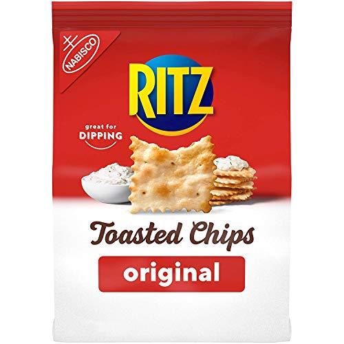 RITZ Toasted Chips Original, 8.1 oz (Pack of 2). Serve these reduced fat chips as party snacks alongside other salted chips, by themselves or with your favorite dips. Each 8.1 ounce bag of RITZ Original Toasted Chips is sealed to lock in freshness and great taste. These oven baked chips are toasted, not fried, so they contain 55 percent less fat than the leading regular fried potato chips. Pack these snack chips in lunchboxes for a crunchy companion to sandwiches, or add them to your snack food shelf as a tasty after school treat. RITZ Toasted Chips are a crispy, crunchy twist on the classic cracker you know and love.