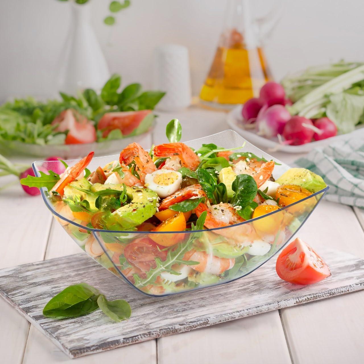 - STURDY, DURABLE AND HEAVY DUTY: Plastic salad bowl is Crafted to last and endure frequent use, our heavy-duty clear bowls plastic for party are impressively sturdy and durable, providing a reliable, unbreakable option for any event.