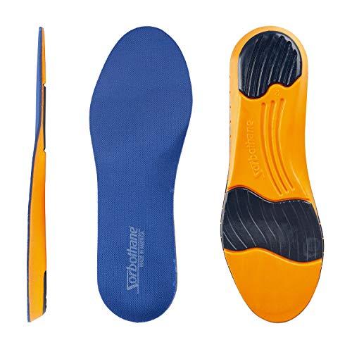 - INSERTS FOR EVERY OCCASION: Whether youre running, walking, hiking, biking, playing sports, or using them in your work boots, heels, or flats, our insoles offer extra shock protection in the ball of the foot and heel thanks to the added Sorbothane material. Designed for use by men and women, our insoles fit womens shoes up to size 11.5 and size 8 to 9 in men's.