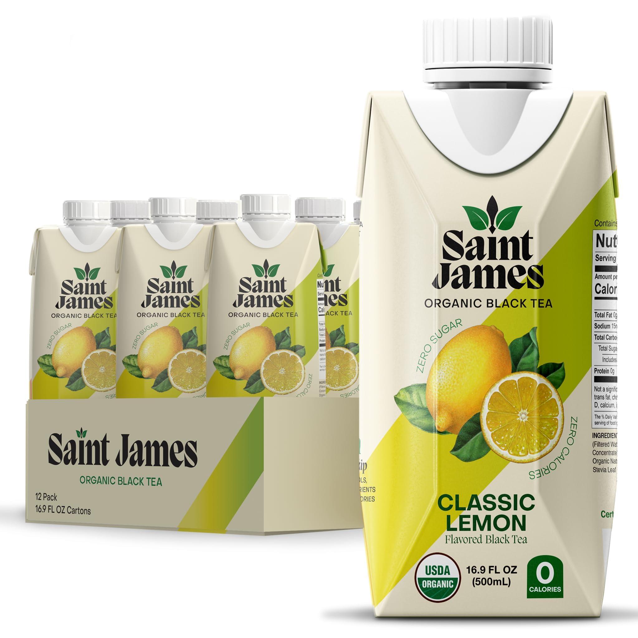 - Saint James Organic Black Tea, Classic Lemon, Zero Sugar, Kosher, USDA Certified Organic, 16.9 Fluid Ounce (Pack of 12)