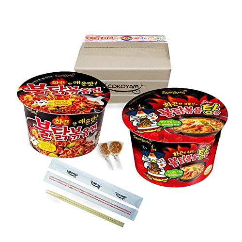 Samyang Hot Chicken Buldak Noodle Big Bowl 6 Flavors Combo (Original, 2X, Stew, Cheese, Jjajang, Kimchi) (2 Flavors(Original & Stew), Pack of 1)