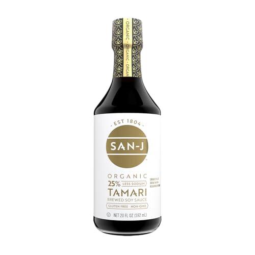 San-J - Organic Gluten Free Tamari Soy Sauce with 25% Less Sodium - Specially Brewed - Made with 100% Whole Soy - 20 oz. Bottle