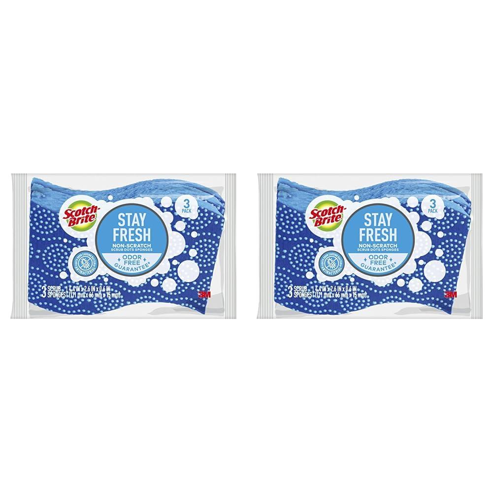 Scotch Brite Non Scratch Scrub Dots scrub sponge featuring Scotch Brite Scrub Dots will help you power through the toughest messes without trapping food. Eliminate the toughest baked on messes with a scrub sponge that scrubs fast and stays clean. The innovative scrub dots cut through messes and rinse clean even eggs and cheese wont stick