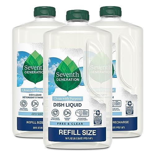 Tough on dirty dishes, not the hands that wash them. Seventh Generation Free & Clear Dish Liquid cuts through grease and powers away tough residue without the use of fragrances, dyes, phosphates, or triclosan. This fragrance-free liquid soap refill is dermatologist tested and made for sensitive skin. Its gluten free, too. Our safe and effective formula is made with plant-based ingredients and is designed with safety in mind EPA Safer Choice Certified Product and USDA Certified Biobased Product 95%. For more than 25 years, Seventh Generation has been thoughtfully formulating safe and effective plant-based products that work. Really well. Our dish detergent uses powerful plant-based ingredients to break down tough residue and lift away food, leaving your dishes sparkling clean. Yes, even those fussy egg stains. Based in Vermont, Seventh Generation is proud to be a Certified B Corporation. B Corps are certified to be better for workers, better for communities, and better for the environment. You may also notice a cute Leaping Bunny seal on our products. That means we never test our products on animals and our products do not contain animal-based ingredients. We design our products to be safe for people, their homes, and the environment. By choosing Seventh Generation products, youre joining us in nurturing the health of the next seven generations. *safe when used as directed