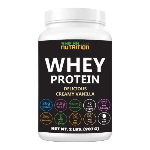 - DELICIOUS POST-WORKOUT, AND FOOD SUPPLEMENT: Each serving contains 460mg of added Glutamine and 2767mg of leucine for protein biosynthesis and absorption. The Delicious Creamy Vanilla Protein Powder is a great post-workout supplement to boost recovery, build muscles and gain strength. Also, to make up for Protein Intake, our Halal Whey Protein Powder can be used anytime with shakes, smoothies, pancakes, etc.