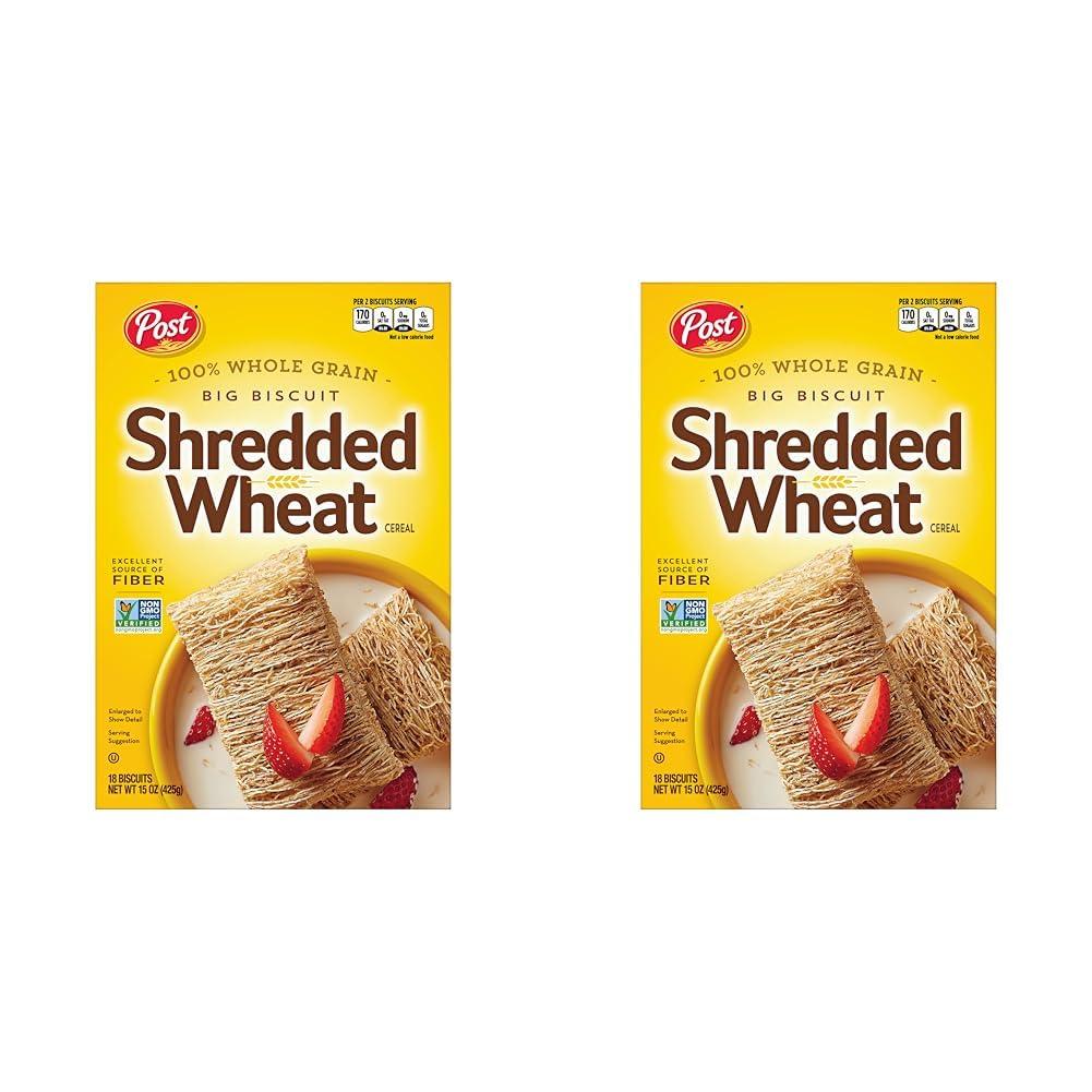 Post Shredded Wheat Big Biscuit, Whole Grain, Non-Gmo, Heart Healthy Breakfast Cereal, 15 Oz (Pack of 2)