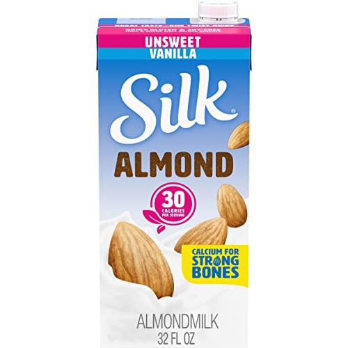 Bring the creamy goodness of almondmilk to your pantry with Silk Shelf-Stable Unsweetened Vanilla Almondmilk. Featuring a delicate vanilla taste and just 30 calories per serving, this unsweetened almondmilk is delicious whether its poured over cereal, added to your favorite recipes, or enjoyed straight out of the glass. It makes a perfect non-dairy alternative to milk, and is totally free of dairy, soy, lactose, gluten, casein, egg, and MSG. Silk Almondmilk provides vitamin E and contains 50% more calcium than dairy milk.* And since it comes in special, shelf-stable packaging, this unsweetened vanilla nutmilk will keep fresh at room temperature, unopened, until the date code: no refrigeration necessary! *Silk Unsweetened Vanilla Almondmilk: 450mg of calcium per cup; reduced fat dairy milk: 293mg of calcium per cup. USDA National Nutrient Database for Standard Reference. Data consistent with typical reduced fat dairy milk.