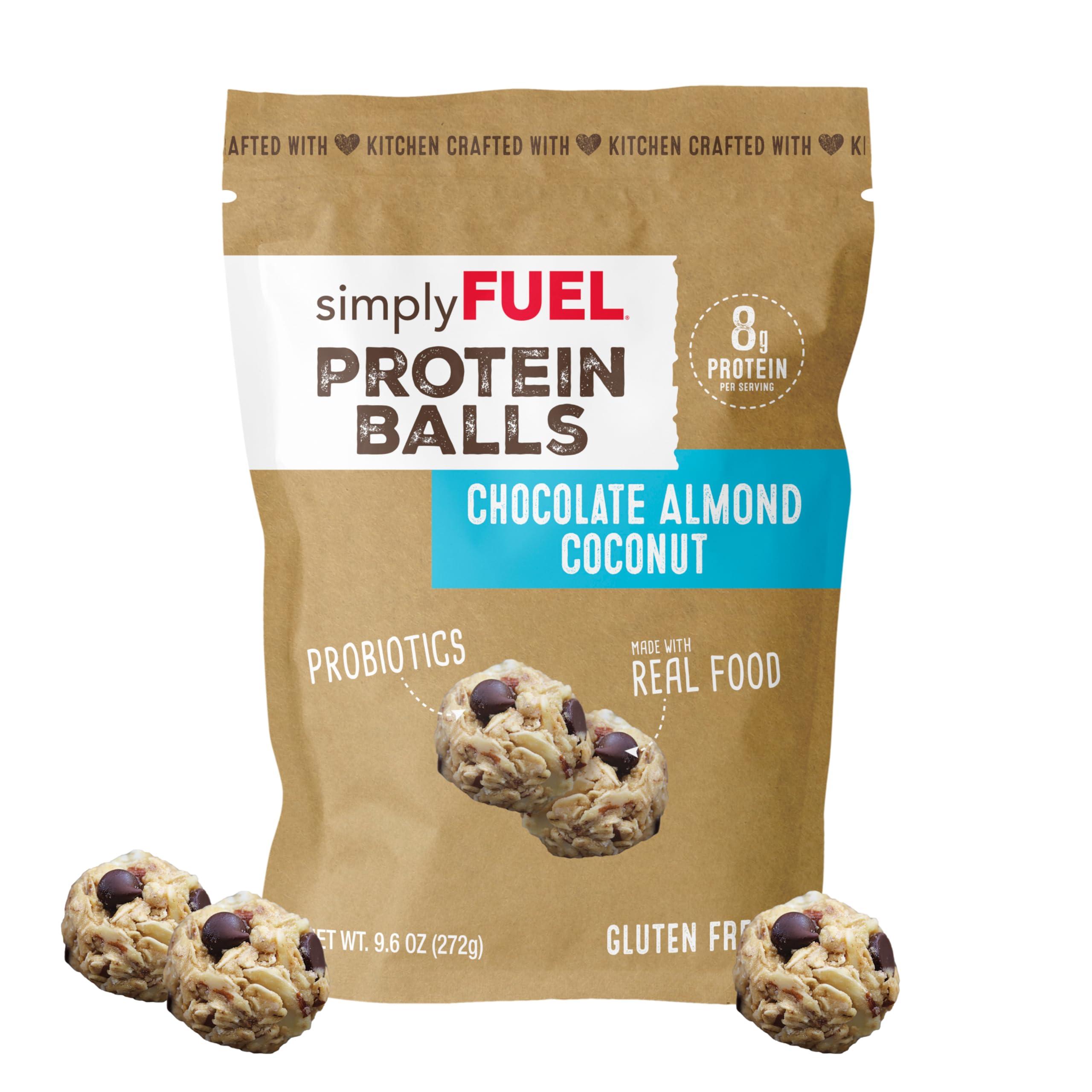 - WHOLE FOOD PROTEIN SNACK: simplyFUEL Protein Balls are the perfect whole food protein snack, offering an ideal combination of protein, healthy fats and carbs. Each serving packs 8 grams of protein into pure deliciousness. No pressure to eat them all at once (even though youll want to), snack now or snack later with our resealable pouch!