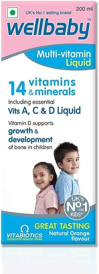 Wellbaby Multi-vitamin Liquid is ideal for babies and young children, to provide a carefully balanced, comprehensive range of 14 essential vitamins and minerals. Recommended Dosage : (2 to 12 years) : 5 ml (1 teaspoonful) once daily.