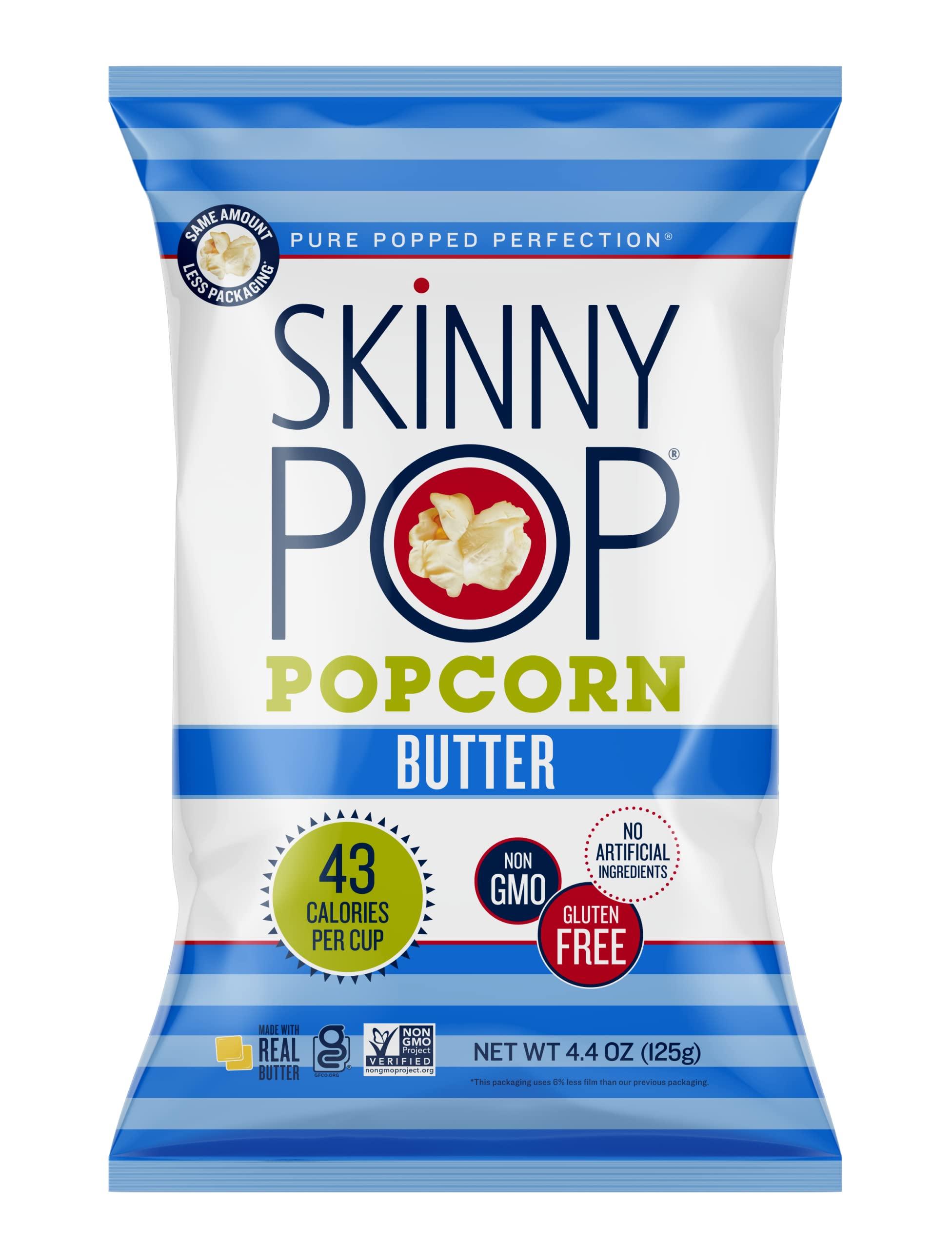 - Feeling guilty? Don't be. SkinnyPop is guilt-free! Free from GMOs, gluten and preservatives, you've got nothing to worry about.