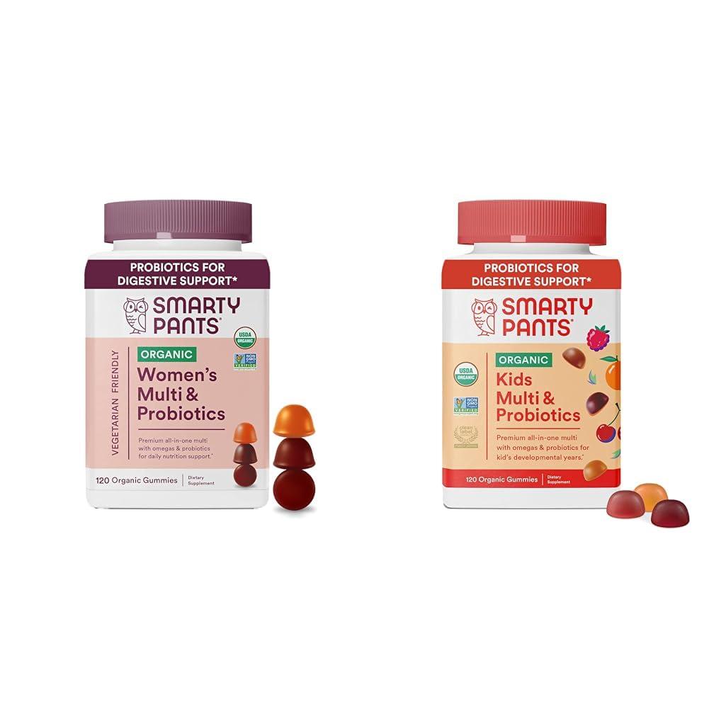 The SmartyPants Organic Women's and Kids Multivitamin Gummy Bundles provide premium certified-organic supplements tailored for women and children. The Women's Bundle includes 120 vegetarian gummies with omega-3s, probiotics, and 15 essential nutrients like vitamins A, C, D3, B6, B12, biotin, zinc, and selenium to support busy lifestyles. The Kids Bundle has 120 gummies with omega-3s, probiotics, and 16 essential nutrients like vitamins A, C, D3, B6, B12, zinc, and more to support growing bodies. Both provide more complete nutrition than leading gummy competitors. Their clean formulas are third-party purity tested and use quality ingredients like vitamin D3, methylfolate, and methylcobalamin for better absorption. The women's raspberry lemon lime and grape flavors and kids' cherry, orange, and mixed berry flavors have delicious natural flavors kids love. With the essential nutrients, omega-3s, and probiotics tailored for each gender and age group, these bundles complement one another to promote overall family health. The women meet their own nutritional needs while kids get their own complete development support. Together, the bundles provide premium organic nutrition for the whole family.