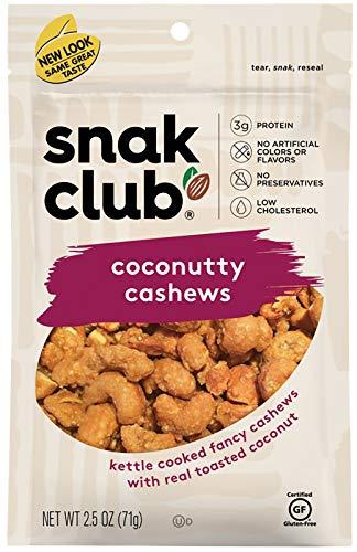What makes our nuts even more irresistible? Adding a touch of sweetness. Our Snak Club Coconutty Cashews are a scrumptious fusion of cashews coated in praline and covered in toasted coconut. These kettle cooked fancy cashews are the answer to your cravings. These aren't your everyday nuts - these are gourmet-style snacks made in our state-of-the-art facility and the 3g of protein per serving will help keep you satisfied throughout the day. The convenient bag design makes it easy to share at home or anywhere you go. Toss a bag into your purse, school backpack, hiking sack, briefcase, or gym bag. Elevate your snacking and explore and enjoy other Snak Club nut blends, trail mix varieties, candies, and gummy bears in individual bags and bulk packs. Since 1984, our snacks have been bursting with deliciousness, making each Snak Club moment truly satisfying. Take your adventure-seeking taste buds on a journey. *Gluten Intolerance Group, 01/31/2024 **Orthodox Union Letter of Kosher Certification, 02/20/2024