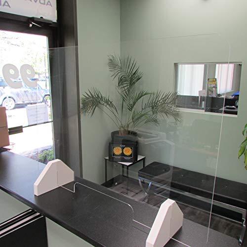 Protect yourself, employees and your clients w sneeze guards!! 36" wide x 24" high x 1/8" thick w a 12" x 2" transaction window in the center. Sturdy 3/4" thick 8" x 5" Black Base w non-slip pads. Advanced Plastic Fabrications on Long Island, NY can make ANY SIZE PROTECTIVE BARRIER you need to keep your customers and employees safe.