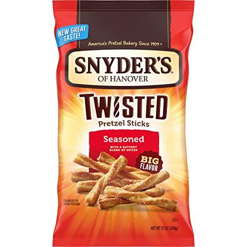 Snyders of Hanover Seasoned Twisted Pretzel Sticks are generously seasoned with a delicious buttery blend of onion, garlic and pepper. Their BIG, irresistibly craveable flavor and light, crispy crunch will send your taste buds spinning and then keep you coming back for more. Weve added a twist of tasty to our bold flavor to create a whole new sort of snack. Snyders pretzels are created from quality ingredients, kneaded, and oven-baked to seal in all the goodness. Its no wonder our delicious snacks have been shared across tables, between generations, from one end of the country to the other making us Americas favorite pretzel brand. A 12-oz. bag of Snyders Twisted Seasoned Pretzels is a bowl-worthy snack that you can enjoy with friends, family or on your own. Either way, be sure to feed your cravings with the flavor of Snyders pretzel snacks. Go ahead and make some noise!