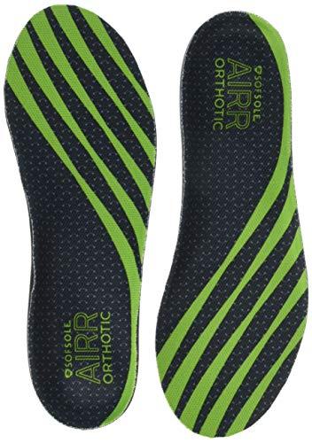 The Sof Sole Men's Airr Orthotic Full-Length Performance Shoe Insoles provide athletic orthotic support for flat feet and low arches. Featuring a reinforced nylon stability plate to enhance motion control, the athletic inserts promote better alignment for low arched feet, while SKYDEX air bubbles shock absorbing technology in the heel and arch absorbs impact during walking, running, jumping, cycling, and cross training. A COOLMAX fabric covering on the top of the insert wicks away moisture to keep feel cool and dry during athletic activity. The Sof Sole Men's Airr Orthotic Full-Length Performance Shoe Insoles are ideal orthotic insert arch supports for athletic shoes. Available in four sizes to fit men's athletic shoes: Men's 7-8.5, Men's 9-10.5, Men's 11-12.5, and Men's 13-14.