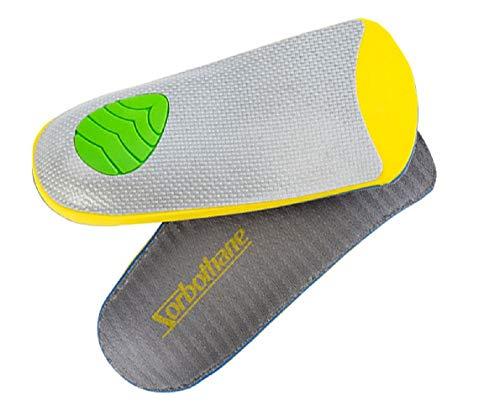 Sorbothane 3/4-Ultra PLUS Stability Insole - The Sorbothane 3/4-Ultra PLUS Stability Insole is a rigid orthotic arch support insole that is for all arch types. They feature an air-infused Sorbothane base with a deep heel cup for maximum shock absorption. They have an integrated base that has a custom composite stability system with the cushioning of Sorbothane and a moisture wicking top cover. Product Features: Rigid orthotic arch support 3/4-length footbed Expanded Sorbothane cushioning Air-infused Sorbothane base Deep heel cup alignment Dri-lex moisture wicking top cover Custom integrated support system Sorbothane impact protection Ideal For: Shoe type: Athletic, Boots Activity type: Running & Walking, Work & Industrial, Gym & Workout Arch type: Medium to High Arch Pain relief: Arch Pain & Arch Strain, Flat Feet & Fallen Arches, High Arches, Over Pronation, Plantar Fasciitis, Sesamoiditis Item #: SBT-ULTRA-PLUSQuick Overview: The Sorbothane Ultra PLUS Stability Insole features a rigid orthotic arch support that has a deep heel cup and are lined with an air-infused Sorbothane base for maximum shock absorption. They have a moisture wicking top cover and a custom integrated support system.