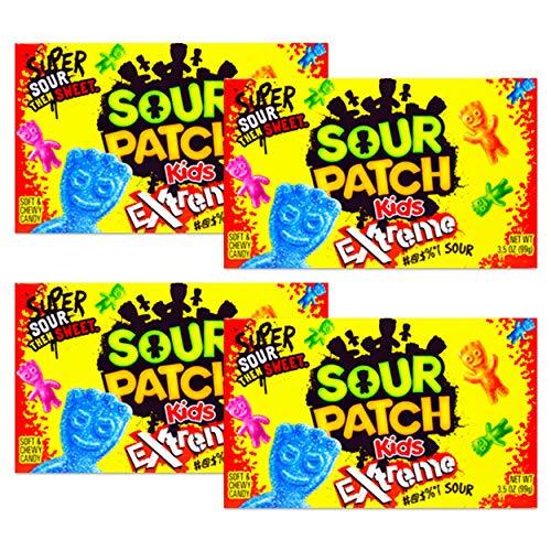 Sour Patch Kids Extreme Candy - 4 Pack Bundle Sour Patch Kids Bulk Family Sized Sour Then Sweet (14 oz Total). This bulk pack of Sour Patch Kids Extreme includes 4 packs each weighing 3.5 oz for a total of 14 oz of delicious extreme candy. Enjoy this soft & chewy extreme flavored candy while curled up on the couch, in bed, in the backyard, or anywhere else! Sour Patch Kids Extreme makes the perfect snack any time of the day. Take a bag with you on the go wherever you go! These bulk individually wrapped sour patch extreme candies are great to share with family and friends during a movie night, backyard party, or just a simple gathering. You may also try Sour Patch Kids strawberries and extreme.