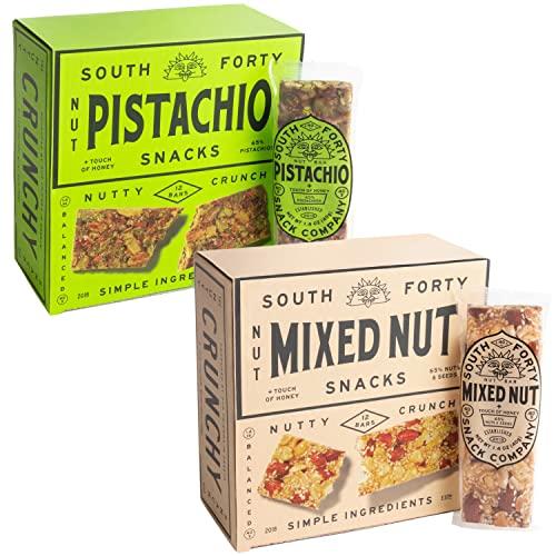 SOUTH FORTY SNACKS South 40 Snacks Pistachio and Mixed Nut Bar, Extra Crunchy Nut Snack Bar, Simple Ingredients, Honey and Sugar, Unique Delicious Healthy Nut Clusters, Individually Wrapped (40g Bar, Pack of 12)