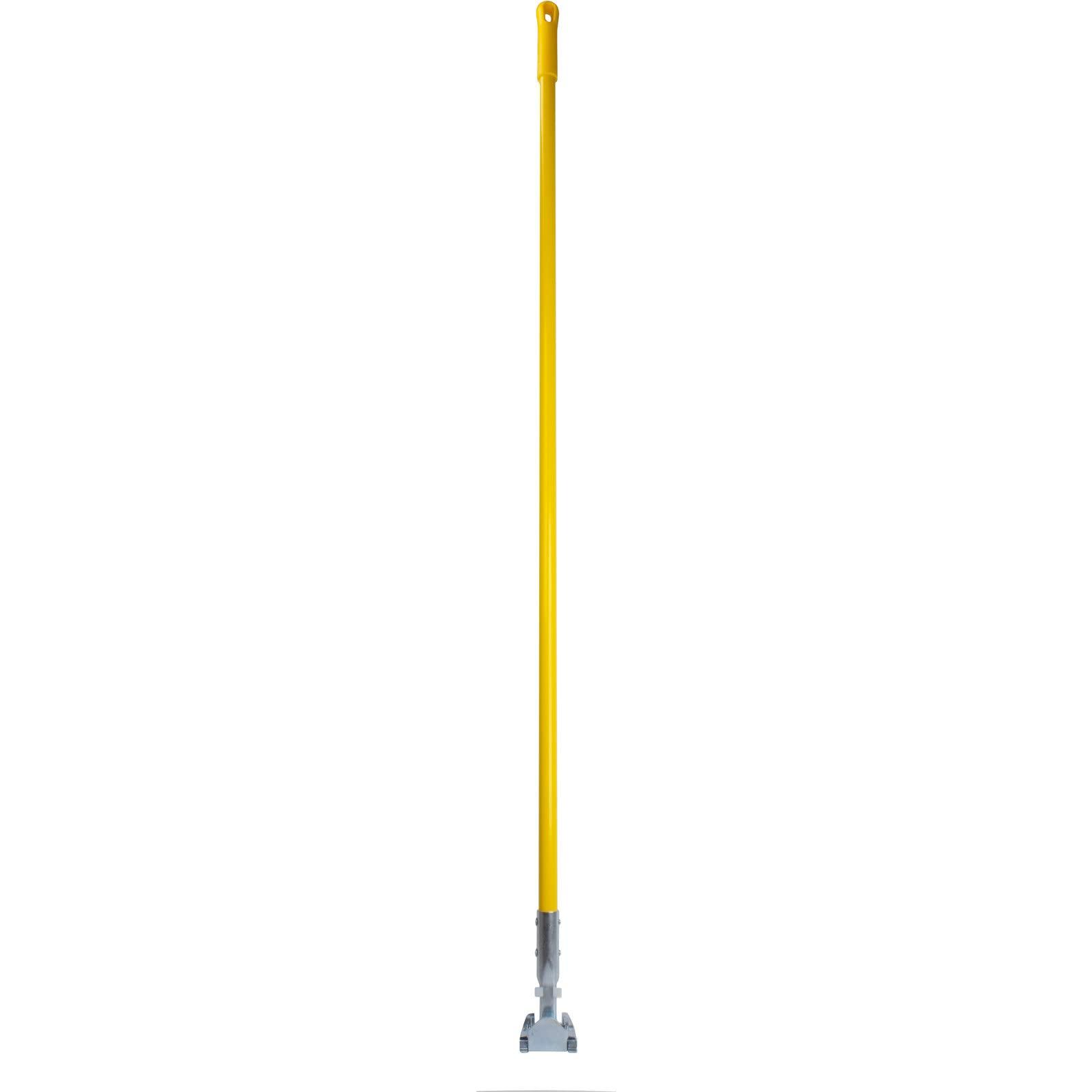 Introducing the Sparta Fiberglass Dust Mop Handle with Clip-On Connector - the ultimate cleaning tool for your home or business! With its durable construction and innovative design, this mop handle makes cleaning a breeze. Measuring a generous 60" in length, this fiberglass handle is long enough to provide 360 degrees of cleaning coverage. And with its flexible design, you can easily maneuver the handle to reach even the tightest spaces. But what really sets this mop handle apart is its sliding collar. This innovative feature locks the handle into position, ensuring that it stays securely in place while you clean. And with the clip-on connector, you can easily attach and detach dust mop frames as needed. Made from high-quality materials, this mop handle is built to last. And with 13 color options to choose from, you can easily color code your cleaning tools for specific areas or tasks. Don't settle for a flimsy, cheap mop handle that breaks after just a few uses. Choose the Sparta Fiberglass Dust Mop Handle with Clip-On Connector for a durable and reliable cleaning tool that will make your cleaning tasks easier and more efficient.