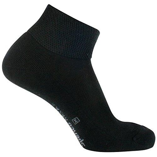 Spence Medics Quarter-Length Diabetic Compression Socks with a soft ribbed top are designed to provide the benefits of compression in a lower cut sock. Ribbing promotes circulation and makes it easier to get the socks on and off the foot. Med Dry moisture management offers wicking action to keep feet cool and dry. The seamless hand linked toe closure eliminates the discomfort of a seam, and a heel pocket cradles the foot and prevents slippage. Cushioning and mesh construction ensure all-day comfort and maximum breathability. Available in a range of sizes to accommodate sensitive feet.