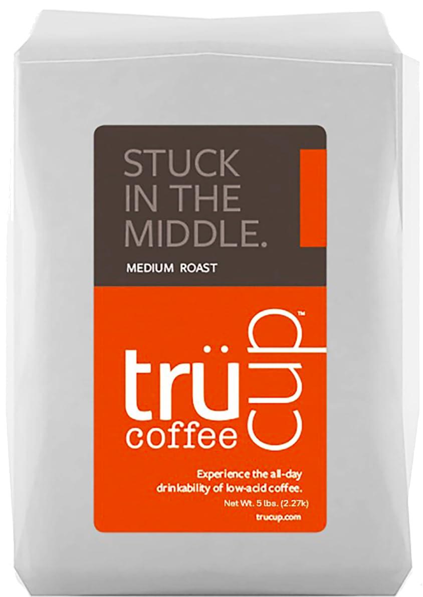 trcup Low Acid Coffee- Stuck in the Middle Medium Roast Mellow out each morning with a cup of trcup Stuck in the Middle blend. The medium roast, low-acid coffee is smooth, well balanced and can be easier on the stomach. Selected from premium coffee beans, the true medium roast retains a complex, well-balanced flavor with no bitterness. Easy on the StomachUndergoing an all natural water and steam process, trcup coffee is less acidic than traditional coffees for a moderate brew that is easier to drink and can be gentler on the stomach. The natural, chemical-free process raises the pH level by removing tannic and lipid acids while retaining caffeine, flavor and aroma for a smooth, flavorful cup of coffee. The low acid coffee is ideal for those who suffer from acid reflux, heartburn and general stomach irritation as well as individuals with GERD or peptic ulcers. Optimal Freshness Available in whole bean form, trcup coffee is expertly roasted and packaged in a vacuum-sealed bag, trcup bags utilize a one-way valve to ensure optimal freshness. Whats Included: trcup Stuck in the Middle Medium Roast Whole bean coffee 12 Ounces