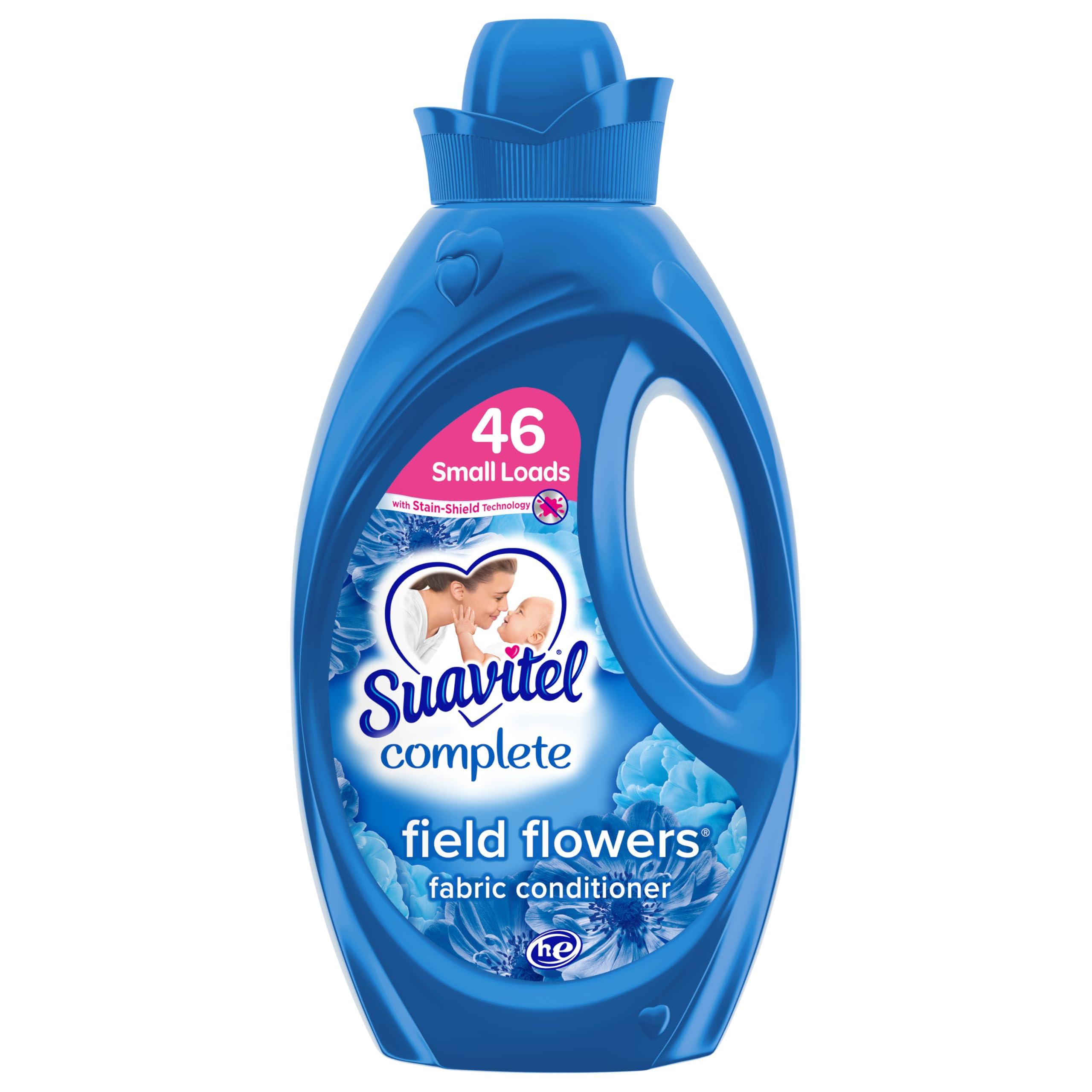 - One 46 oz Bottle of Suavitel Complete Liquid Fabric Conditioner, Laundry Fabric Protection Technology (1), Field Flowers Scent