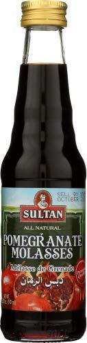 Sultan Molasses Pomegranate, 10 oz (Pack of 3). Pomegranate molasses is a syrup-like reduction of pomegranate juice that has a really unique, tart-sweet flavor and is colored a gorgeous, deep reddish purple. It's as thick as maple syrup with sweet and sour flavors that combine the best of balsamic vinegar with lush fruit. Great as an ingredient in an array of Middle Eastern dishes, it's the sort of addition to sauces and stews that add enormous depth of flavor but no one can ever identify. I've found it particularly good with poultry dishes-it's a nice addition to a creative cook's marinade routine. It's also great drizzled over crepes, fresh Zingerman's Creamery cream cheese, or gelato.