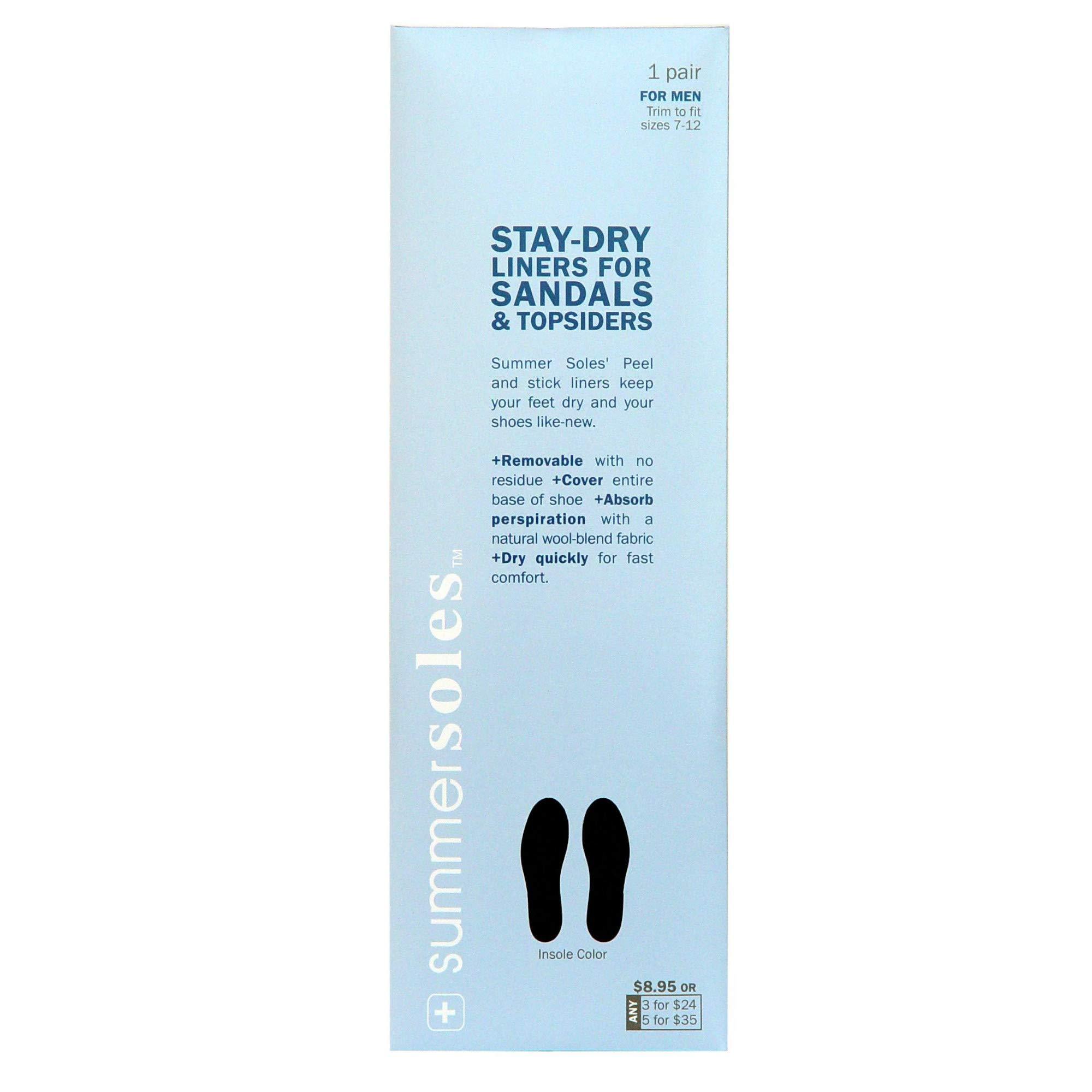 - ULTRA ABSORBENT SUMMER SOLES peel and stick liners bring freshness to any sandal. Go barefoot in topsiders and feel like you never took your socks off! Summer Soles keep your sandals dry and odor-free. Just trim, peel, and stick to fit any shoe size!