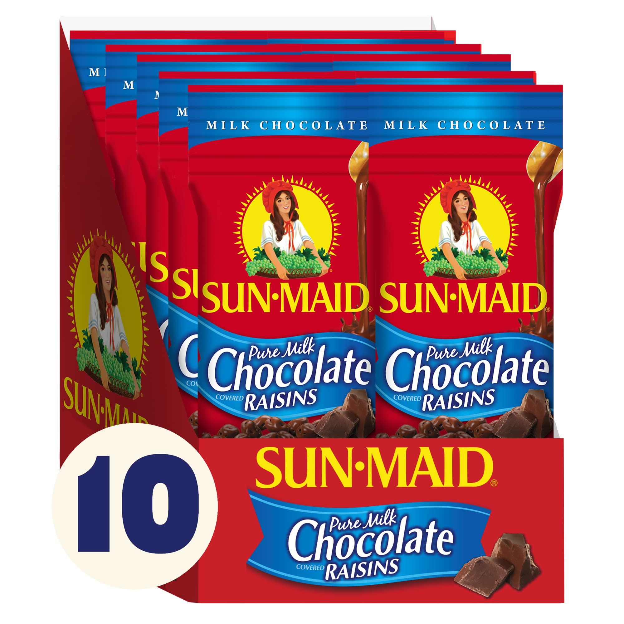 - Sun-Maid California Raisins covered in a blend of Pure Milk Chocolate. A great snack the whole family will love!