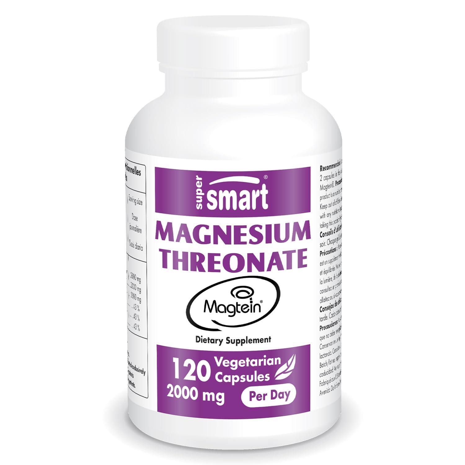 - MAGNESIUM L-THREONATE - Our Supersmart Magnesium L-Threonate supplement contains a potent dose of 2000 mg per day of the patented form Magtein.