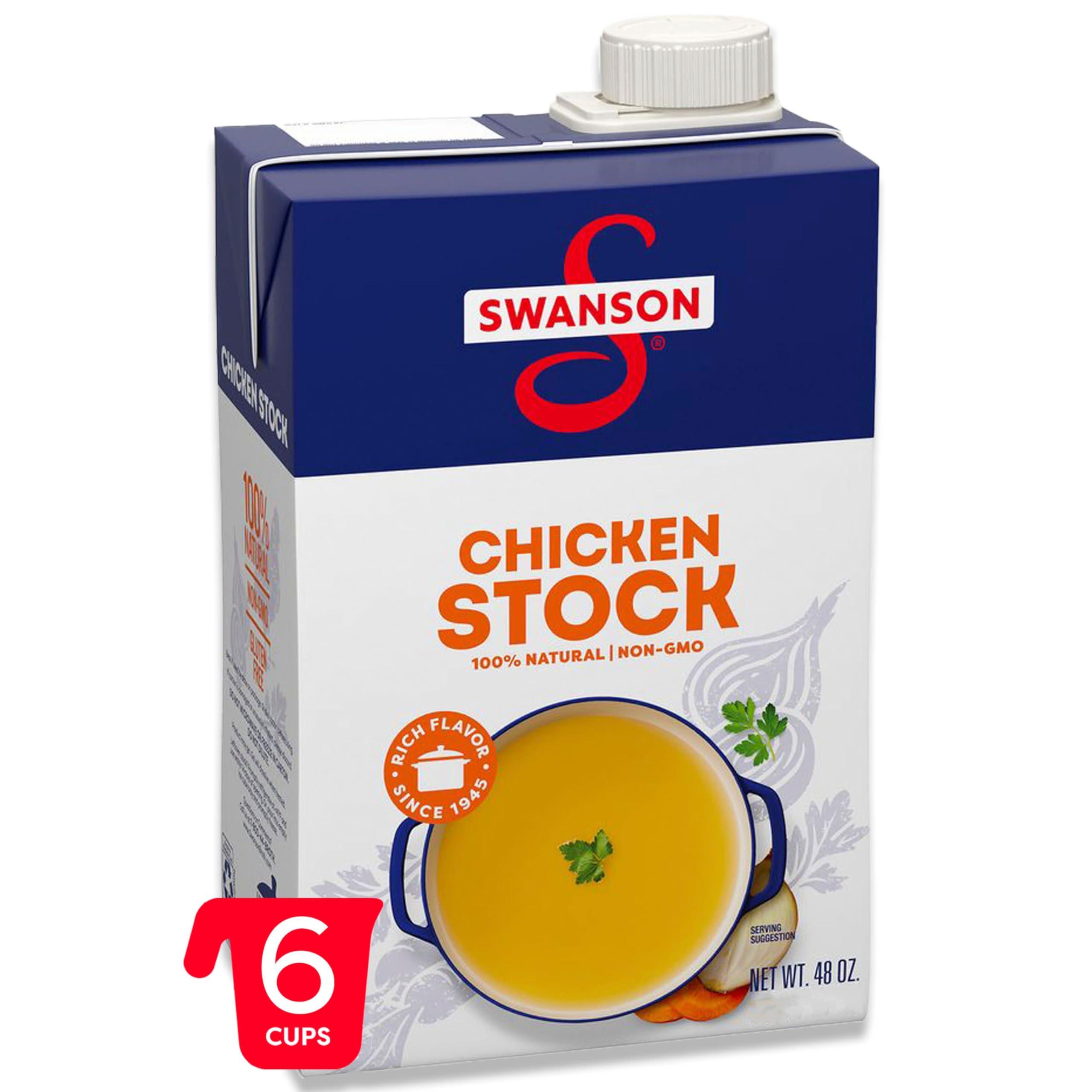 Elevate your homemade meals with the rich, full-bodied flavor of Swanson 100% Natural Chicken Stock. Swanson Chicken Stock brings together the perfectly balanced flavors of farm-raised chicken, vegetables picked at the peak of freshness, and simple seasonings in a convenient recyclable carton. And just like homemade, our chicken stock uses only 100% natural, non-GMO ingredients, with no MSG added, no artificial flavors or colors, and no preservatives. More convenient than chicken bouillon, this fat-free, gluten-free chicken stock is a versatile ingredient for your everyday cooking, adding flavor and moisture to both entrees and side dishes. Chicken stock has an even richer flavor and a heavier texture than chicken broth, with simple seasonings so you can adjust your finished dish to taste. Its great for adding body to sauces and gravies and for deglazing the pan after browning chicken. Swanson Chicken Stock is a must-have for your holiday cooking, bringing richer, elevated homemade flavor to chicken, turkey, ham and more. Its not just any stock. Its Swanson.