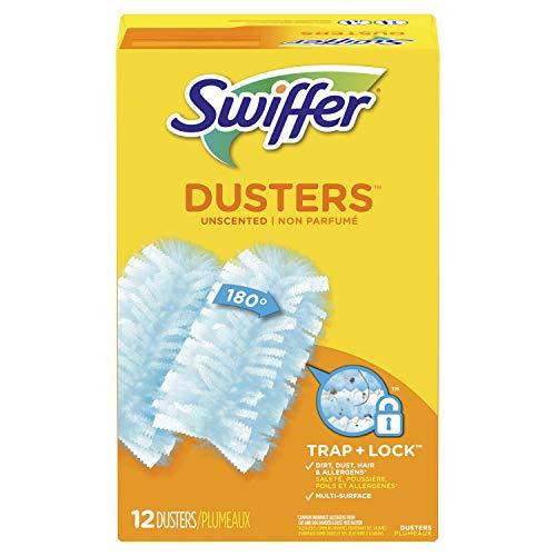 Swiffer dusters trap and lock dust and allergens with thousands of fluffy fibers. That's because each fiber features dust lock adhesive that traps and locks dust away for good. The unique fibers can also change shape to get into nooks and crannies and dust virtually any surface for a great clean. Common inanimate allergens from cat and dog dander and dust mite matter.