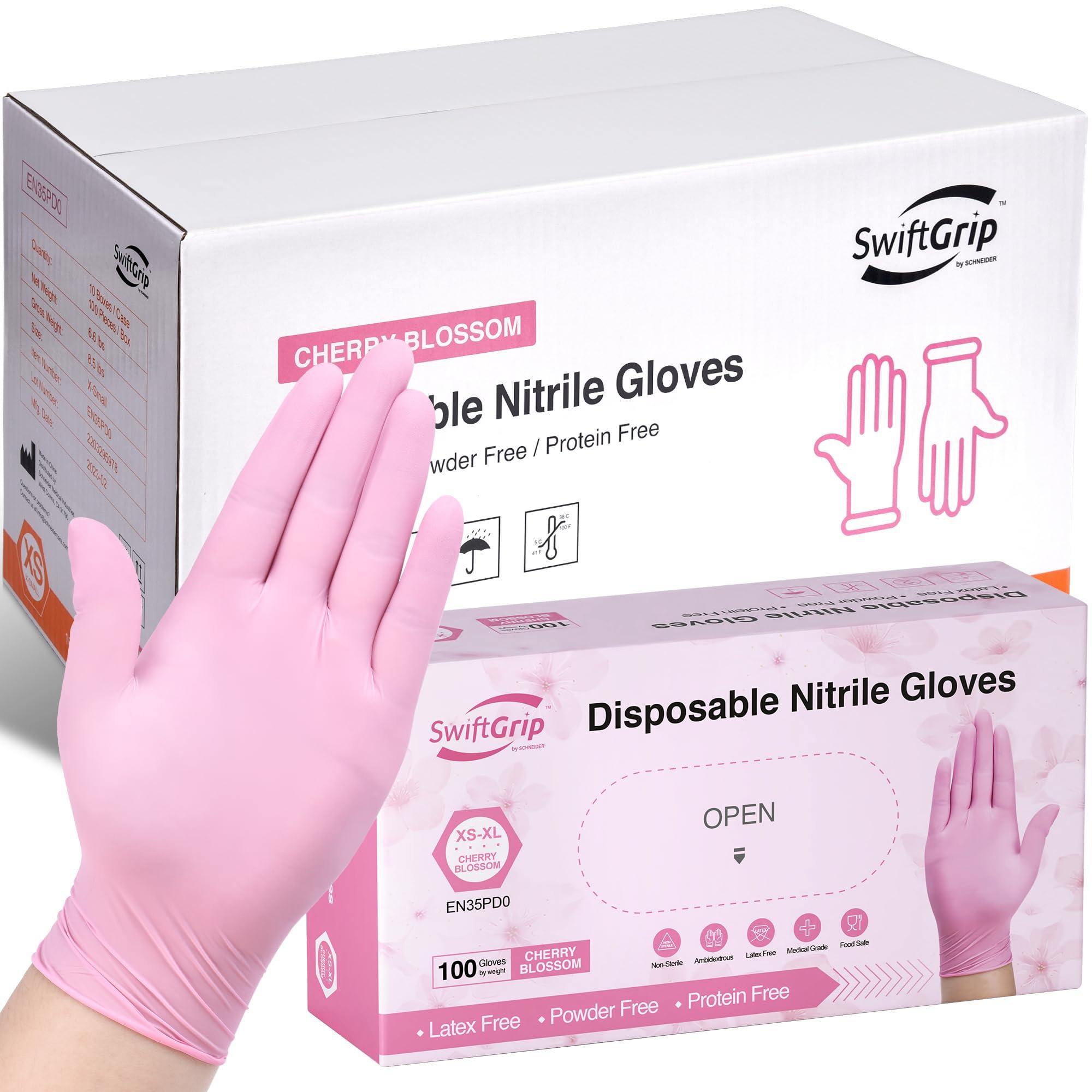 - MULTIPURPOSE: Our pink color disposable gloves are great for home, office, and professional uses, such as beauty salons, tattoo artists, estheticians, hair-dyeing, hair-styling, epoxy & resin work. SwiftGrip nitrile gloves also available in black, blue, and purple.