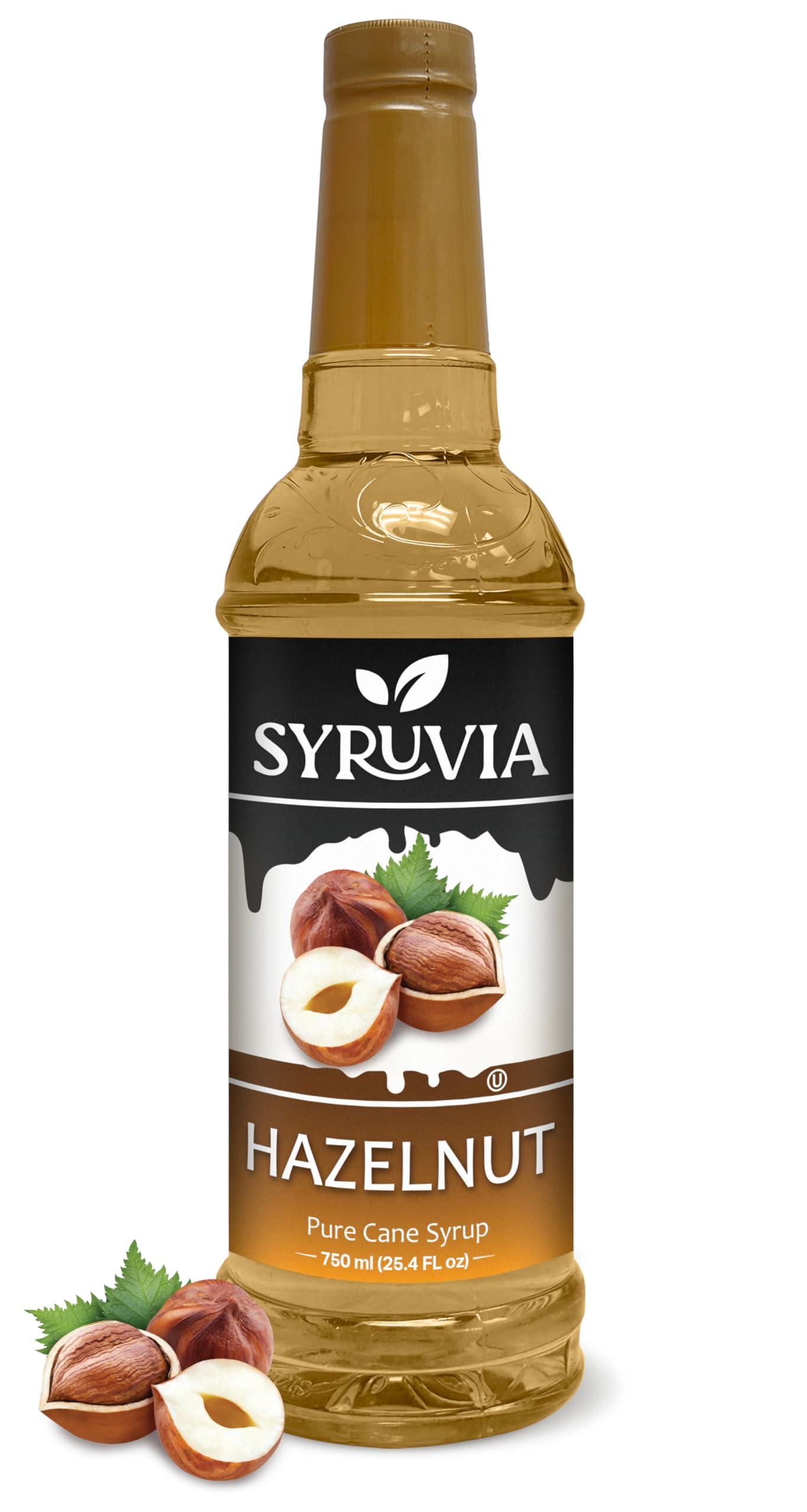 - Hazelnut Syrup: Experience the charming embrace of countryside warmth. Syruvia's Hazelnut Syrup carries the cozy, aromatic scent of roasted hazelnuts, creating a homely mood in every cup.