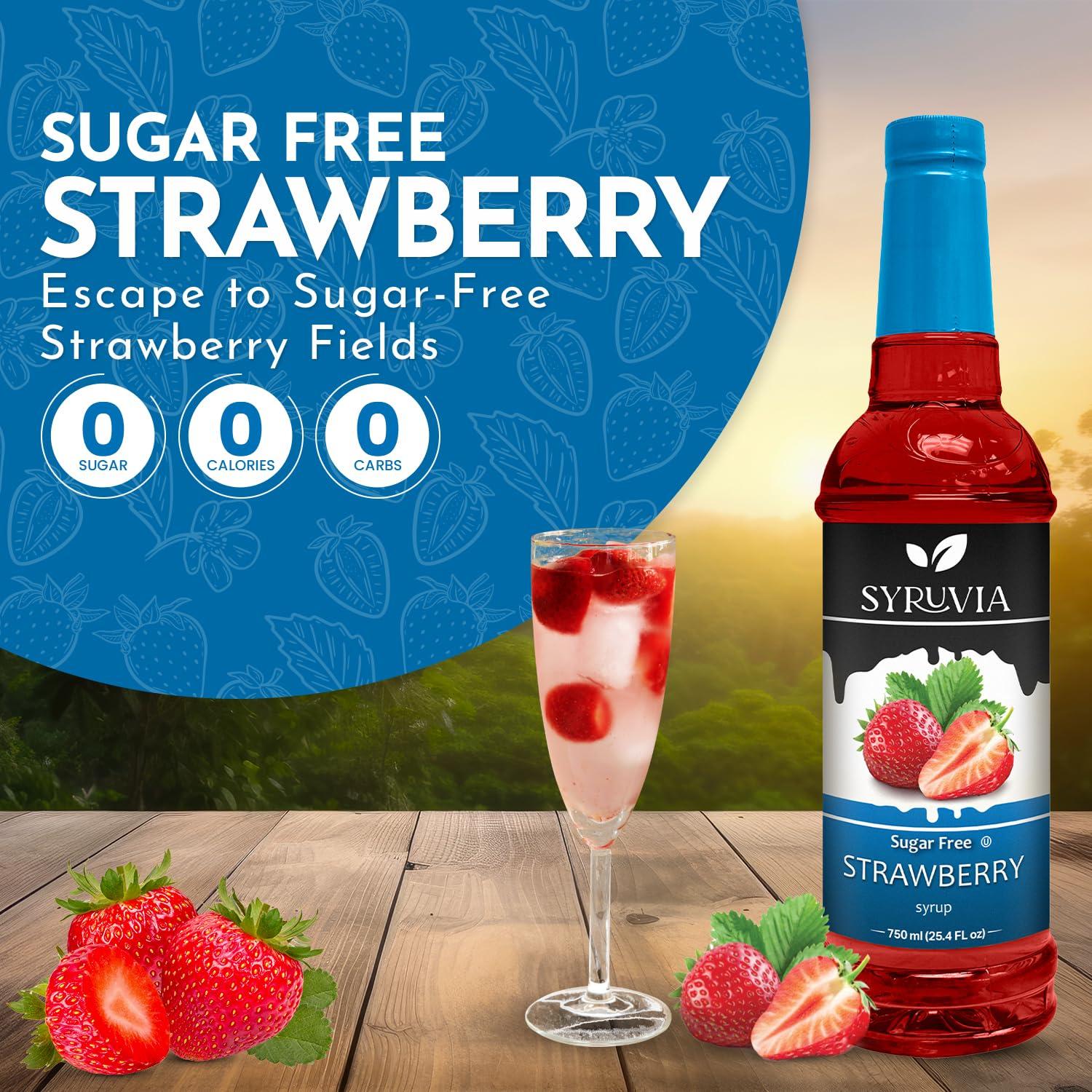 - Berry Bliss: Syruvia Sugar Free Strawberry Syrup captures the luscious, sweet essence of ripe strawberries in every drop, allowing you to indulge in the delightful taste of fresh strawberries without any added sugar.
