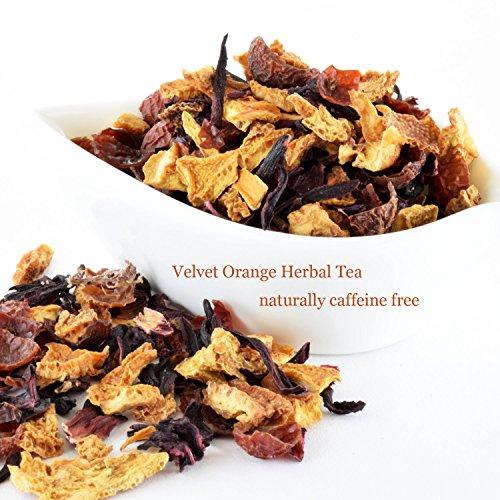 - This naturally sweet, caffeine-free tea pairs blood orange peels with hibiscus flowers and rose hips
