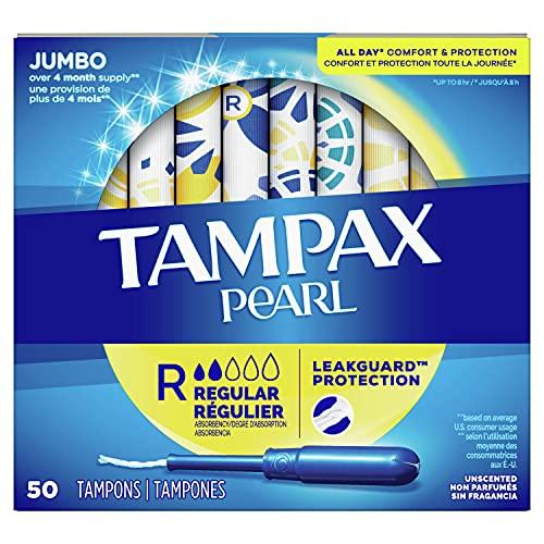 Its time to Tampax and live your life without limits. Get incredible all day comfort and protection for up to eight hours with Tampax Pearl tampons. Choose from five different absorbencies to match your changing flow. Got leaks? Go up an absorbency. Uncomfortable to remove? Go down an absorbency. Designed with a LeakGuard Braid to help stop leaks before they happen. Tampax Pearl Regular Absorbency provides protection you can feel good about. Free of dyes, perfume, latex*, BPA, and elemental chlorine bleaching. Plus, inserting the tampon is made easy thanks to the applicators Anti-Slip Grip, while Tampax FormFit protection lets it gently expand to your individual shape. Ready to ditch the leaks? Get amazing protection with Tampax, the #1 U.S. Gynecologist recommended tampon brand**. Discover your perfect flow combo and get the protection you need. *natural rubber latex **based on 2020 survey