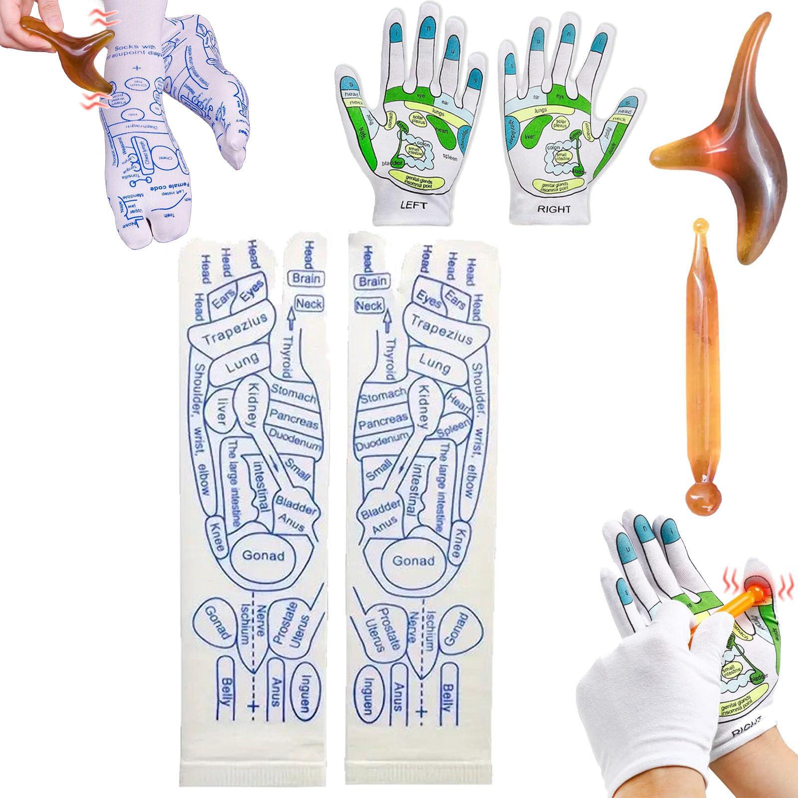 - High Quality MaterialThese reflexology gloves and socks are made of high quality soft elastic fiber material, breathable and comfortable, wear-resistant and unbreakable, and printed with clear point indications for acupressure self-massage