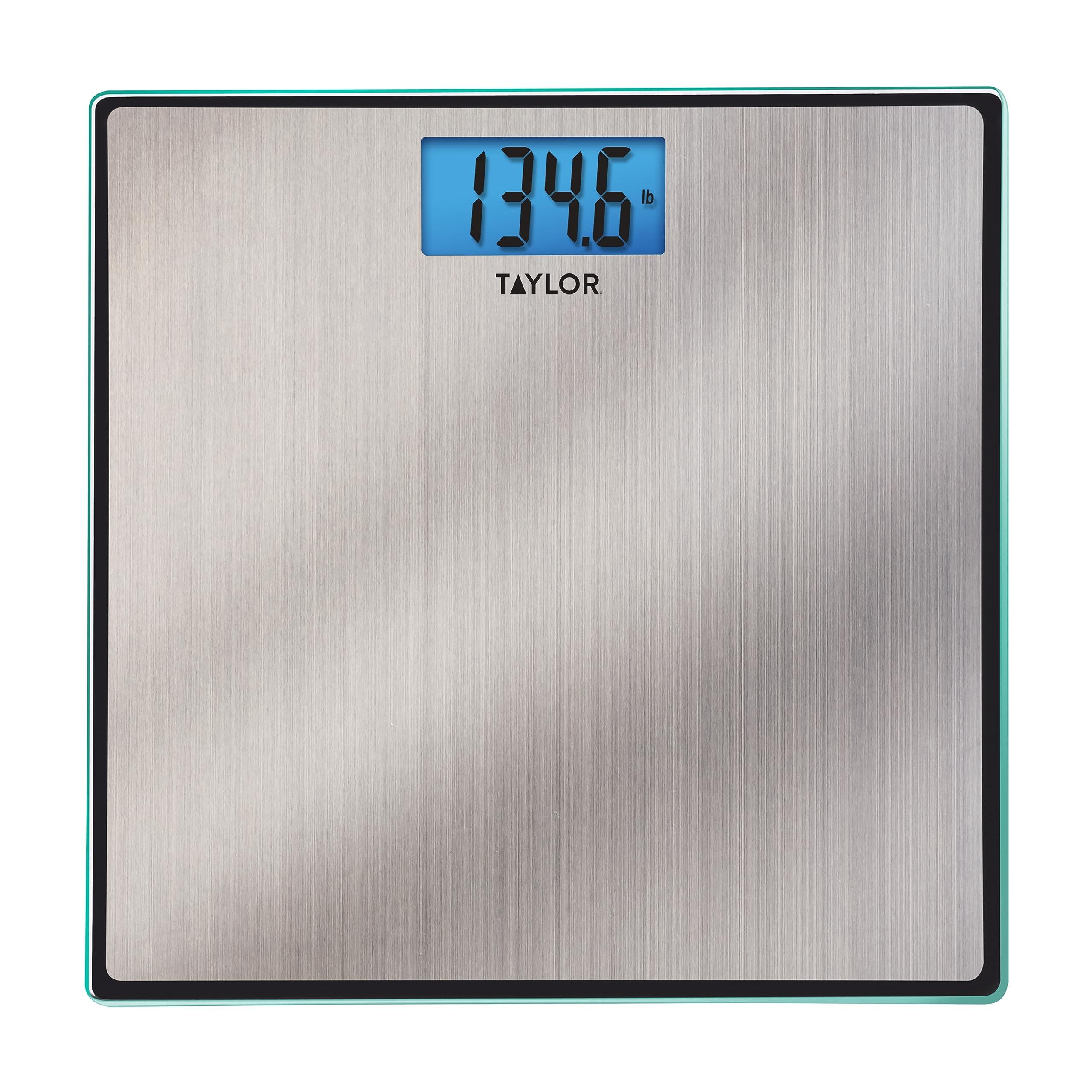 Reach weight goals and measure progress with the functional and stylish Taylor Precision Products Stainless Steel Electronic Lithium Scale. Read weight at a glance with the 1.6-inch blue backlit AccuGlo LCD display. Easily view weights at any angle, even in dim light. Built to accommodate up to approximately 400 pounds (180 kilograms), this tempered-glass platform with a 0.8-inch profile is wrapped in stainless steel for a clean, sleek look. Comfortably measure weight with a spacious 11.75-inch square platform. Never worry about excessive battery drain with instant on, auto off, and low battery indicator (2 CR2032 lithium batteries are included).