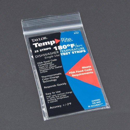 Single-use strip measures temperature during dish machine wash cycle Thread between the prongs of a fork or wrap around a dish rack for secure fit Features thermocromatic color-change band to ensure proper temperature was reached Color-change band visually depicts the reached temperature Features accuracy of +/- 2 degrees Fahrenheit Includes blanks for signature and date; ideal for maintaining temperature log Promotes FDA compliance for your rinse cycle reaching at least 180 degrees Fahrenheit.