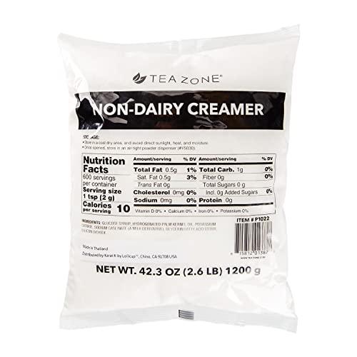 Enhance the rich and creamy taste of your coffee with Tea Zones nondairy creamer! It is a multipurpose premium powder mix ideal for making milk teas, coffees and smoothies. Scoop the mix and add to your customers favorite dessert to get a silky, frothy texture. Made in the USA UPC Code: 815812013878 Unit Sold By: Case (2.65 lbs bag / 10 bags per case) Details Tea Zones Non-Dairy Creamer will add a smooth and creamy texture taste to coffee, tea, and smoothies. Since it is a non-dairy powder powdered formula, it is ideal to be stored in areas where there is a lack of refrigeration. Also, the powder has a higher shelf life than the milk and reduces the risk of spoilage. The package is easy to store and can fit in any place of your kitchen. Since it comes in a resealable container bag, you dont need to worry about storing it at all. Serve a fresh pot of hot chocolate, tea, and milk to your customers with Tea Zones Non-Dairy Creamer and your customer will love you for it. Our lactose-free powder is great for people who are lactose intolerant and hence they can enjoy their favorite drink in your caf or restaurant without any worry. Additionally, our powder is fat-free as well as sugar-free. Storage instructions Store in a cool, dry place away from direct sunlight, heat, and moisture. After opening, empty the powder in an airtight container. Usage instructions Always use a clean, dry scoop to scoop out the powder mix. FAQs How many times can you serve this product? 600 servings each of 2g or 1tbsp. The net weight 42.3 OZ 2.6 lbs 1200 gm. Can you put creamer in tea? Yes, you can add the creamer in beverages like tea and coffee. Moreover, you can also make other beverages like a caramel latte . By using a creamer, your tea will become denser and will show greater thickness. Do I need to keep it refrigerated? No. What is Nondairy creamers' shelf life? 24 months if unopened and 7 days if opened. Make sure to keep the powder dry. Is it gluten-free? Yes Is it gelatin free? Yes Is it nut-free? Yes Is it vegan? No Ingredients: Glucose, Hydrogenated Palm Kernel Oil, Dipotassium Phosphate, Sodium Caseinate, Mono and Diglyceride of Fatty Acid, Sodium Aluminosilicate More Information More Information Amazon URL https://amzn.to/35kMiBk UPC CODE 815812014875
