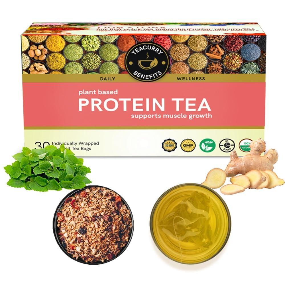 - Teacurry's Natural Protein Tea is a harmonious blend of nature's finest ingredients. The tea features a unique combination of turmeric, ginger, holy basil, spearmint, parsley, fennel seeds, cumin seeds, fenugreek seeds, mustard seeds, flaxseeds, moringa, chia seeds, and spirulina