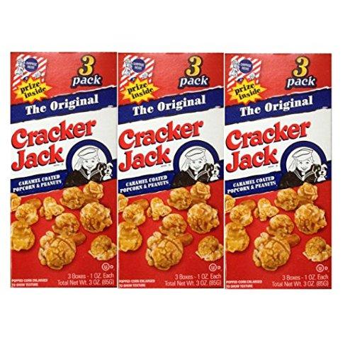 For over a 100 years Cracker Jacks has been one of America's favorite snacks. Nine 1 oz boxes. A Prize in Every Box of the Delicious Blend of Caramel Coated Popcorn and Peanuts. "The More You Eat The More You Want" Your family is Guaranteed to Love Cracker Jacks.